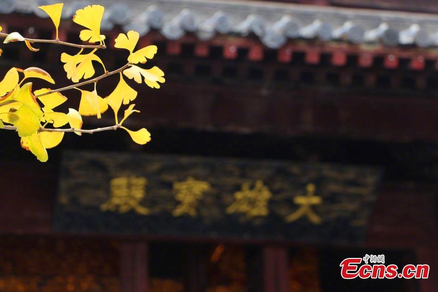 Golden Ginkgo trees illuminate C China's Yuquan Temple