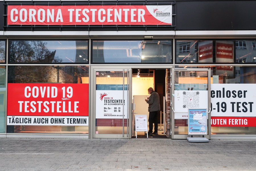 A man enters a COVID-19 test center in Berlin, Germany, on Nov. 15, 2021. (Xinhua/Shan Yuqi)
