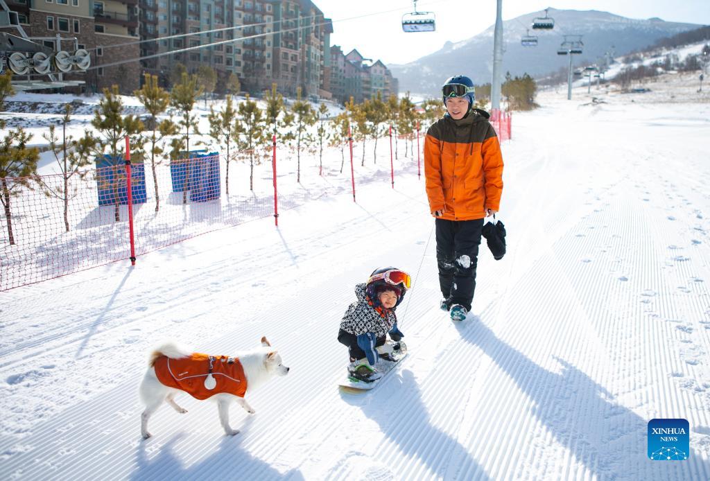 11-month-old baby girl practises skiing at Thaiwoo Ski Resort in China's Hebei