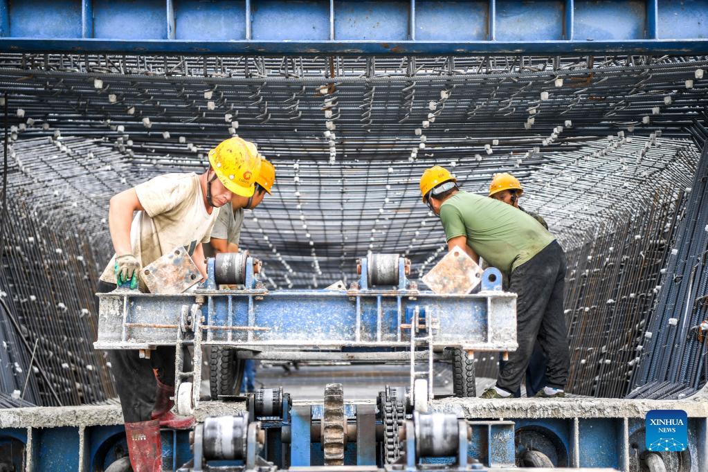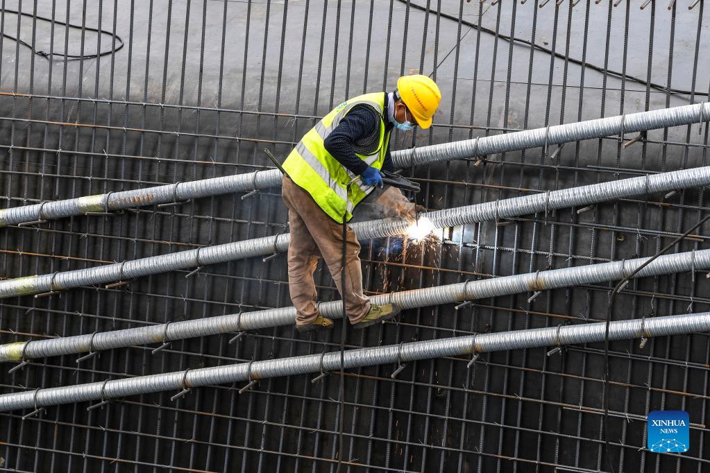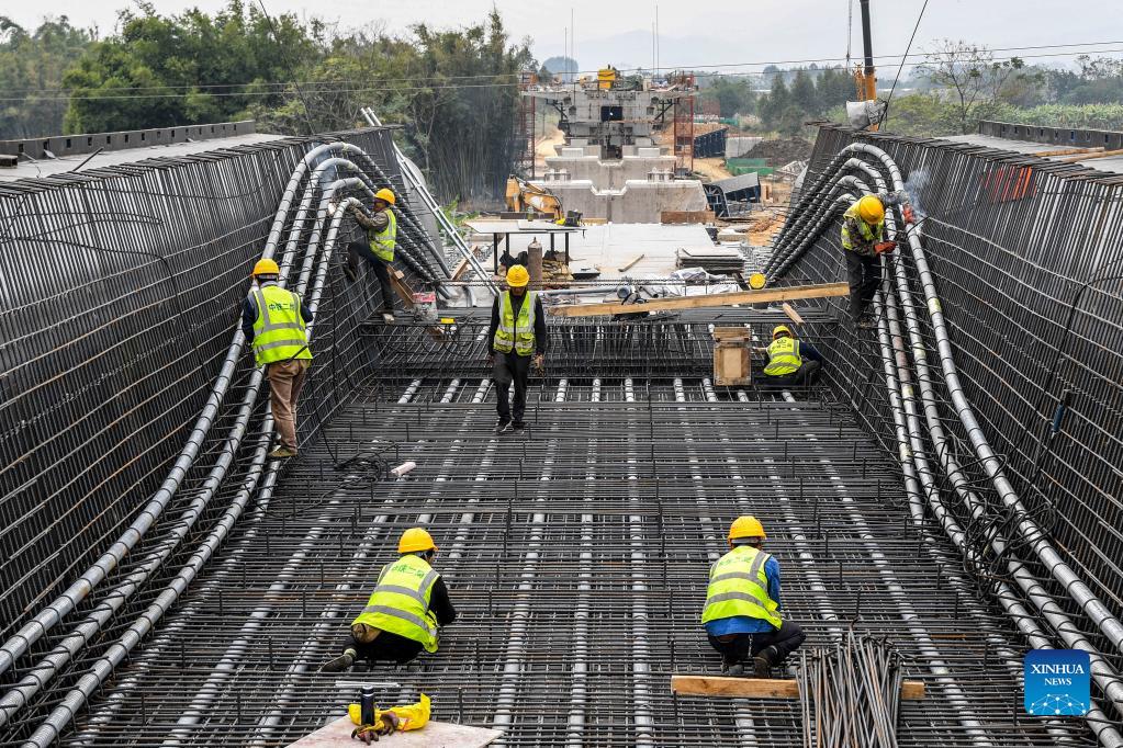 Workers assemble reinforcement at the construction site of the high-speed railway linking Nanning and Yulin of south China's Guangxi Zhuang Autonomous Region, Nov. 18, 2021. With a designed speed of 350 km per hour, the Nanning-Yulin high-speed railway is a crucial part of the high-speed railway linking Nanning of Guangxi Zhuang Autonomous Region and Shenzhen of Guangdong Province. (Xinhua/Cao Yiming)