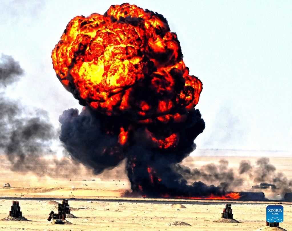 Photo taken on Nov. 18, 2021 shows a target hit during the "Gulf Shooting 2021" exercise in Jahra Governorate, Kuwait. Kuwait concluded on Thursday the "Gulf Shooting 2021" exercise with the participation of Saudi and U.S. forces, said Sheikh Thamer Al-Ali Al-Sabah, Kuwaiti Interior Minister and Acting Defense Minister. (Photo by Asad/Xinhua)