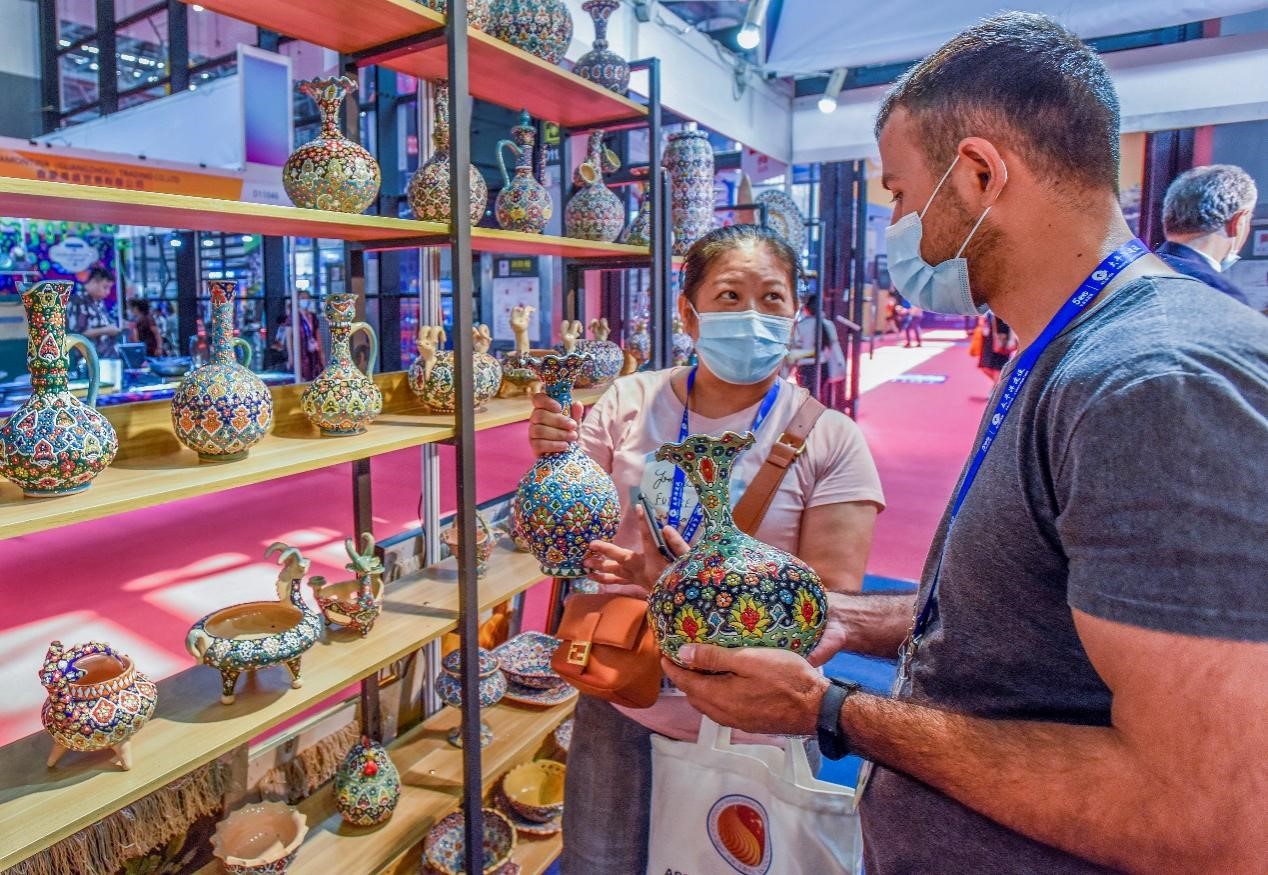 An Iranian exhibitor brings characteristic products to the 18th China-ASEAN Expo, Sept. 11, 2021. (People’s Daily Online/ Peng Huan)