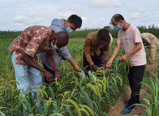 Chinese experts teach local people of Burkina Faso millet cultivation techniques. The technical assistance demonstration project launched by China to train people of Burkina Faso in millet cultivation has been well received by local residents. (Photo/Courtesy of Chinese Embassy in Burkina Faso)
