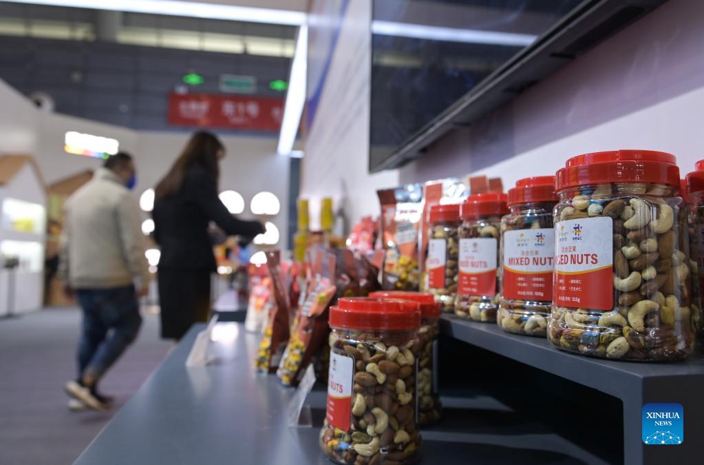 Visitors shop at the Exhibition of Import Commodity during the fourth World Manufacturing Convention in Hefei, capital of east China's Anhui Province, Nov. 20, 2021. The fourth World Manufacturing Convention kicked off Friday in Hefei. The four-day event, themed "innovation-driven, digitally empowered: global manufacturing industry aligned for high-quality growth," aims to promote high-quality manufacturing and deepen exchanges between China and the rest of the world. (Xinhua/Han Xu)