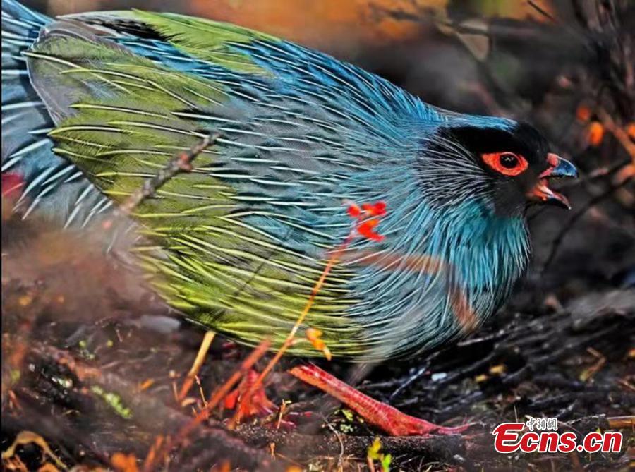 Photo shows blood pheasant. (Photo: China News Service/Li Feng)