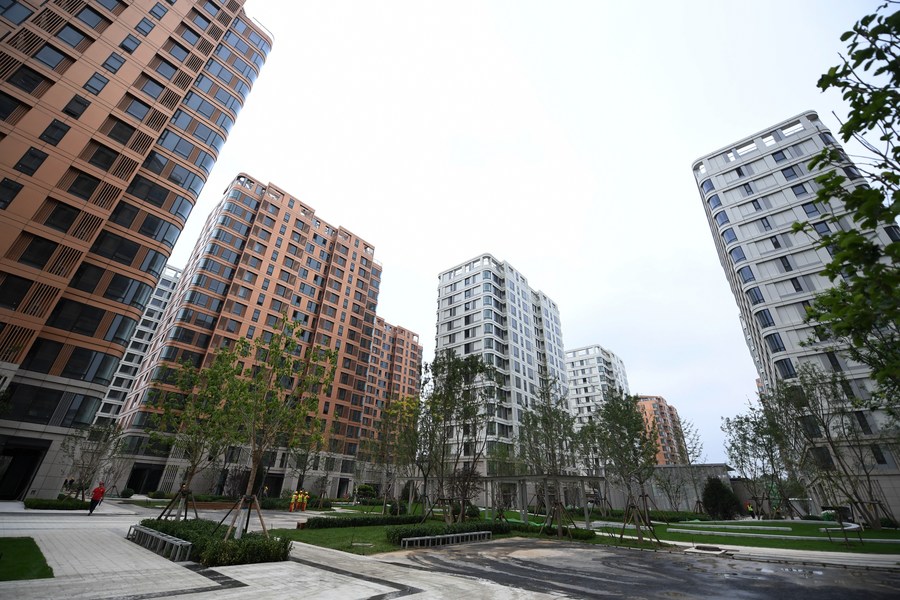 Photo taken on July 16, 2021 shows a view of the Olympic Village for Beijing 2022 Olympic and Paralympic Winter Games in Beijing, capital of China. (Xinhua/Zhang Chenlin)