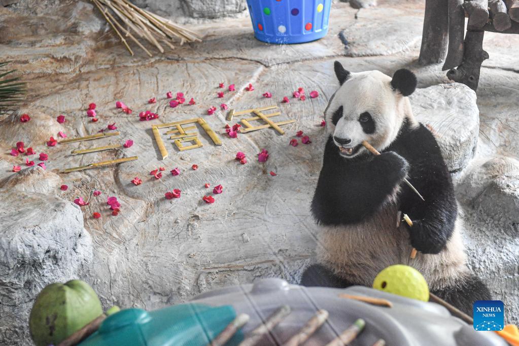 Haikou holds celebrations for two giant pandas inhabiting island for three years