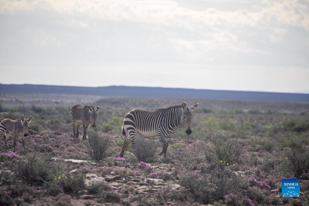 Photo taken on Nov. 21, 2021 shows mountain zebras in Karoo National Park, Western Cape Province, South Africa. Karoo National Park is a small portion of the Great Karoo, a vast and unforgiving landscape. Being the largest ecosystem in South Africa, the Karoo is home to a fascinating diversity of life, all having adapted to survive in these harsh conditions. (Xinhua/Lyu Tianran)