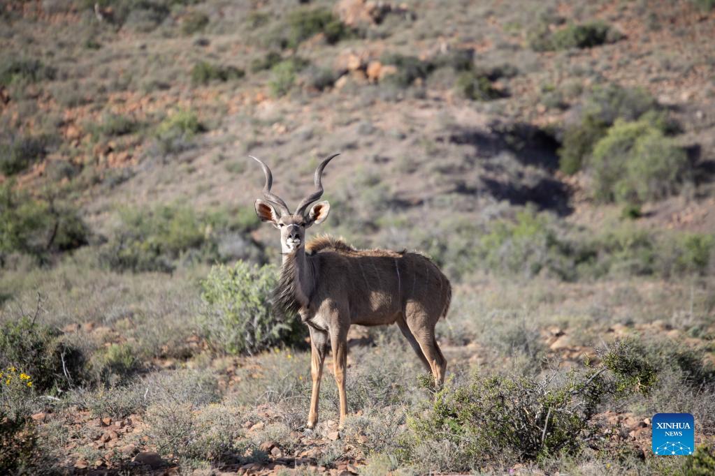 Photo taken on Nov. 21, 2021 shows a kudu in Karoo National Park, Western Cape Province, South Africa. Karoo National Park is a small portion of the Great Karoo, a vast and unforgiving landscape. Being the largest ecosystem in South Africa, the Karoo is home to a fascinating diversity of life, all having adapted to survive in these harsh conditions. (Xinhua/Lyu Tianran)