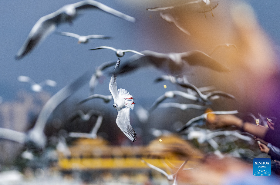 A glimpse of black-headed gulls at Dianchi Lake in Yunnan