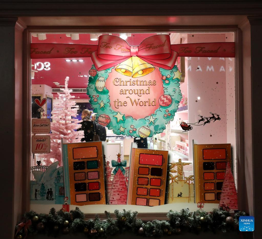People shop in a store, which is decorated for Christmas, in central London, Britain, on Nov. 21, 2021. (Xinhua/Li Ying)