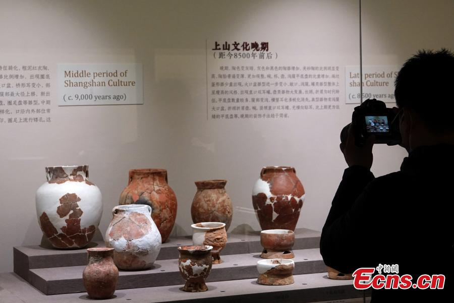The Shangshan Neolithic Ruins is located in Pujiang county, east China's Zhejiang Province. The ruins see the world's earliest rice planting and colored pottery.