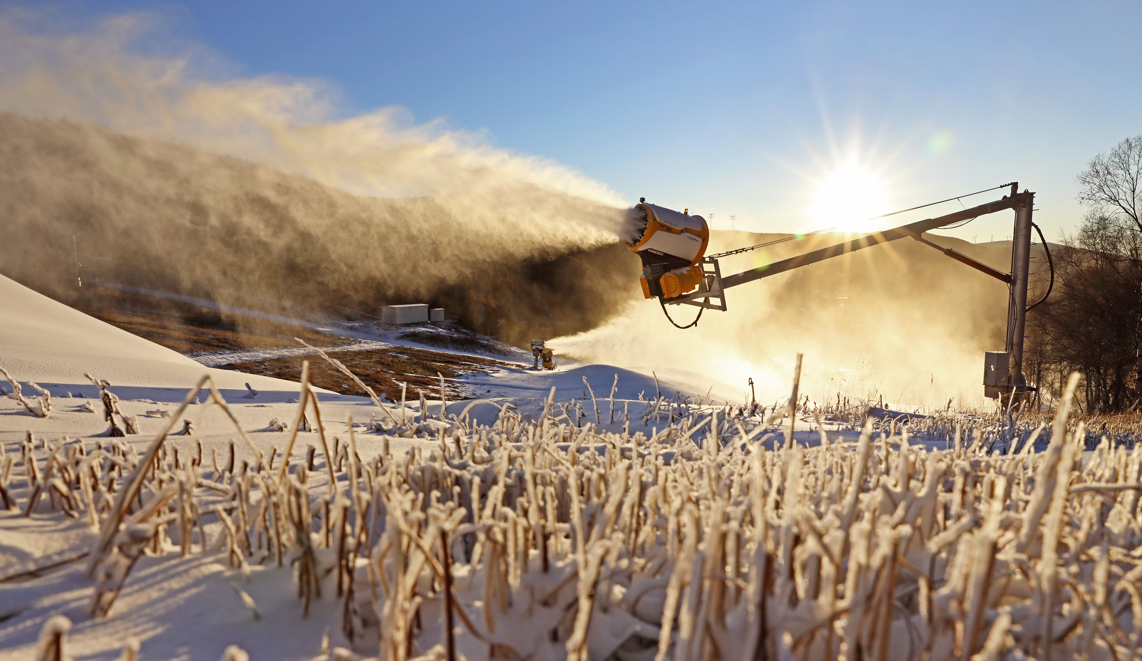 A snowmaking machine works at a ski field in Chongli District of Zhangjiakou City, north China's Hebei Province, Oct. 19, 2021. (Xinhua/Wu Diansen)