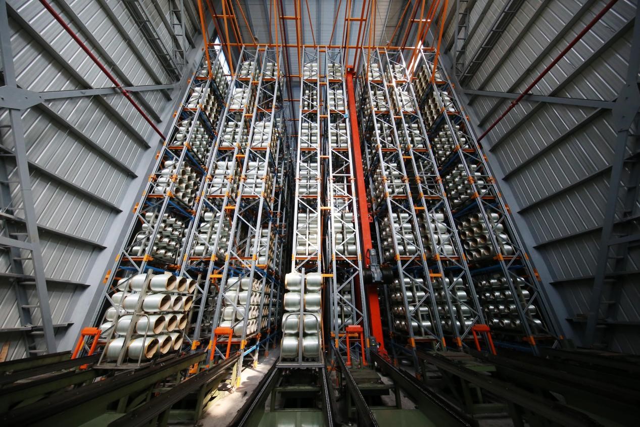 Products are automatically stored in a warehouse of a glass fiber enterprise in Qianjiang district, southwest China's Chongqing municipality, Aug. 4, 2020. (People's Daily Online/Yang Min)