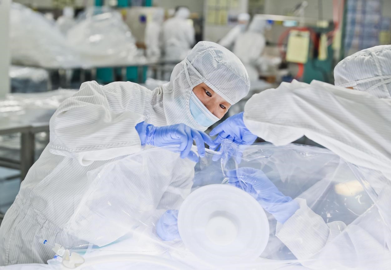 Workers are manufacturing single-use bags at a workshop of Shanghai LePure Biotech in Songjiang district, Shanghai, Sept. 15, 2021. (People's Daily Online/Jiang Huihui)