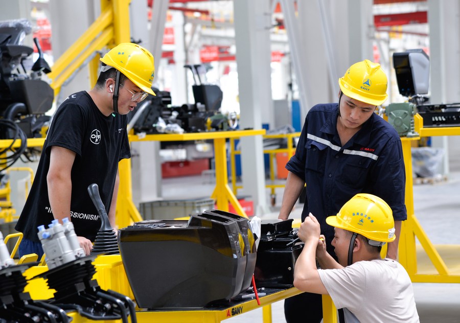 People work at a smart factory of Sany Group in Liangjiang New Area in Chongqing, southwest China, July 19, 2021. (Xinhua/Xu Qin)
