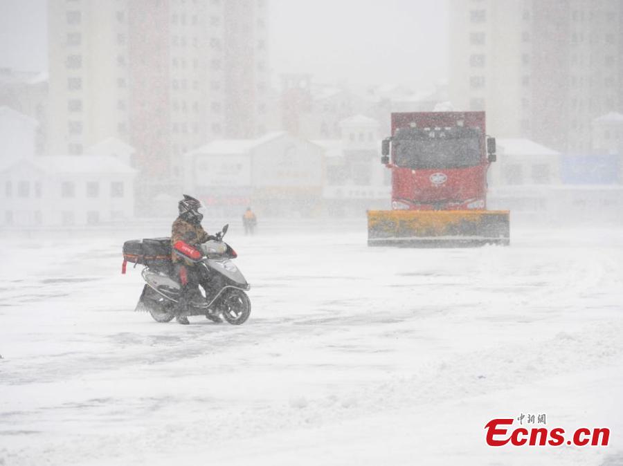 A new round of blizzard swept Jilin province on Monday, the second time in half-a-month. Thirteen cities and counties in the province are facing transport disruptions.