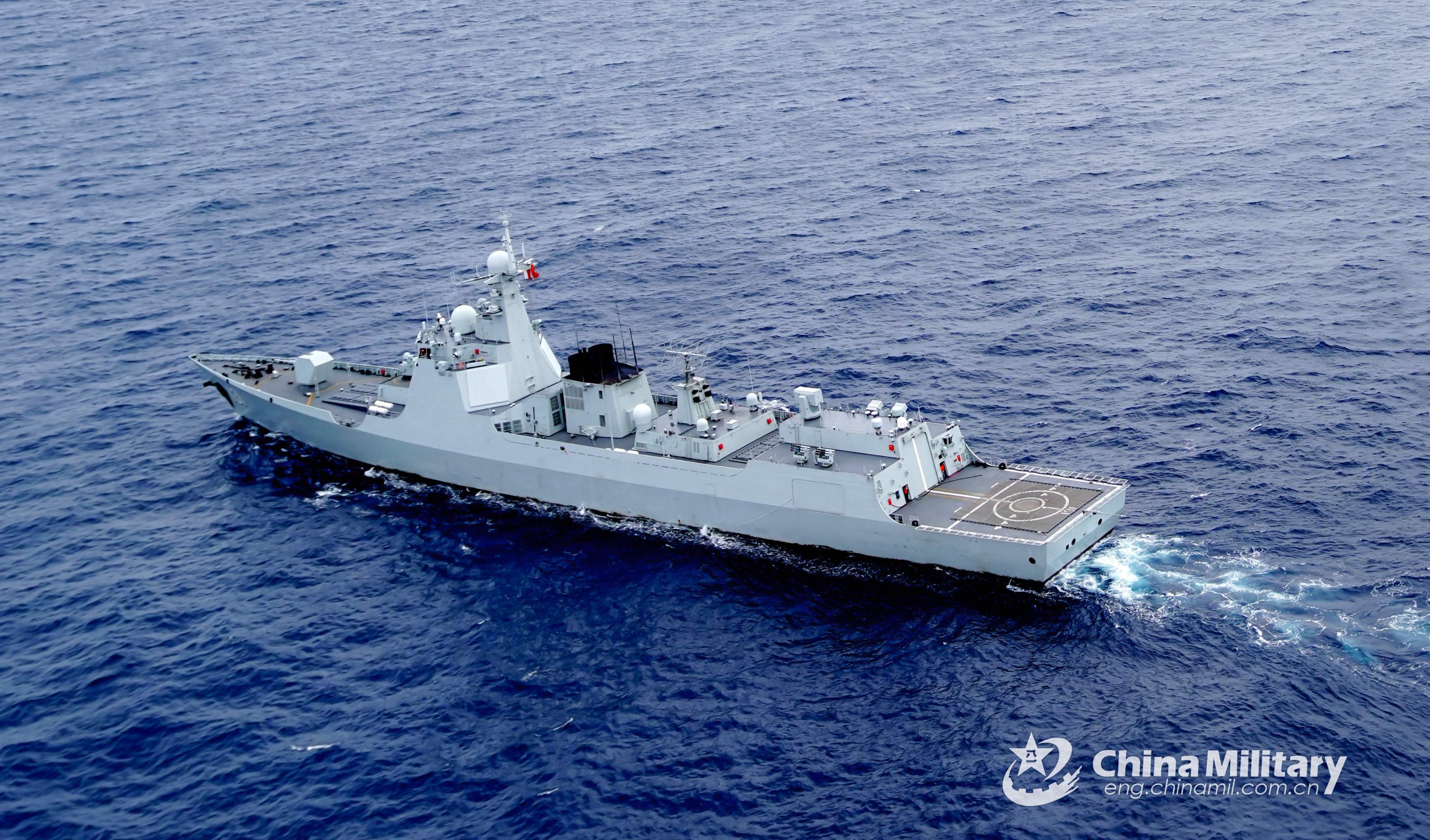 The guided-missile destroyer Taiyuan (Hull 131) attached to a destroyer flotilla with the navy under the PLA Eastern Theater Command steams in waters of the East China Sea during a realistic combat training exercise in early November, 2021. (eng.chinamil.com.cn/Photo by Liu Yaxun)
