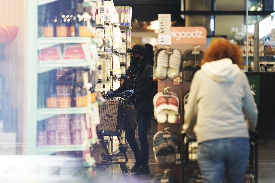 People shop in a grocery store in Washington, D.C., the United States, on Nov. 10, 2021. (Photo by Ting Shen/Xinhua)