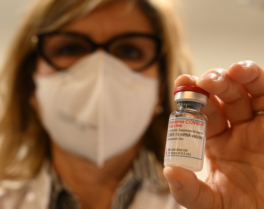 A medical worker displays a COVID-19 vaccine at a vaccination center in Rome, Italy, Feb. 15, 2021. (Xinhua/Alberto Lingria)