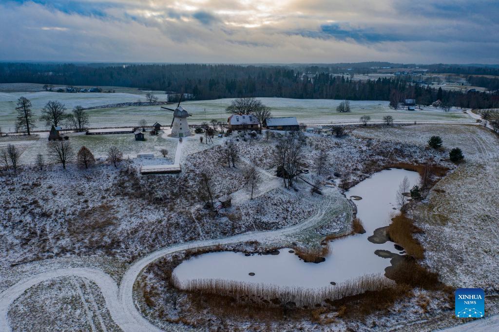 Photo taken on Nov. 23, 2021 shows the winter landscape in Cesis, Latvia. (Photo by Edijs Palens/Xinhua)