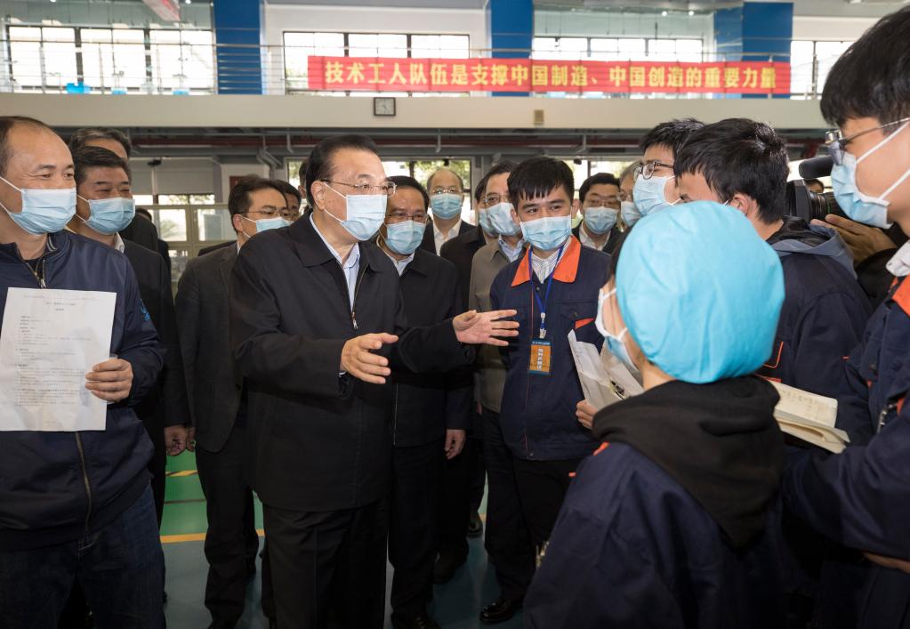 Chinese Premier Li Keqiang, also a member of the Standing Committee of the Political Bureau of the Communist Party of China Central Committee, talks with participants of a training session at a local employment promotion center in east China's Shanghai, Nov. 23, 2021. Li made an inspection tour of Shanghai from Monday to Tuesday. (Xinhua/Wang Ye)