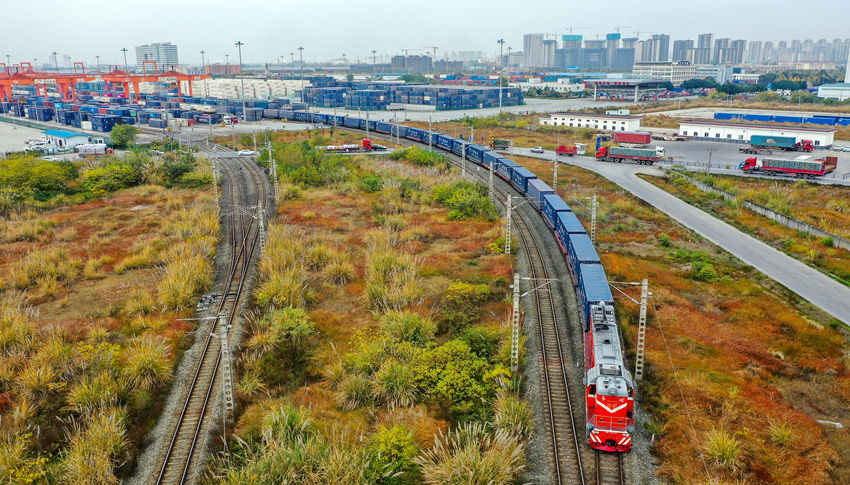 Freight train loaded with 1,300 tonnes of Sichuan tea leaves departs for Central Asia (5)