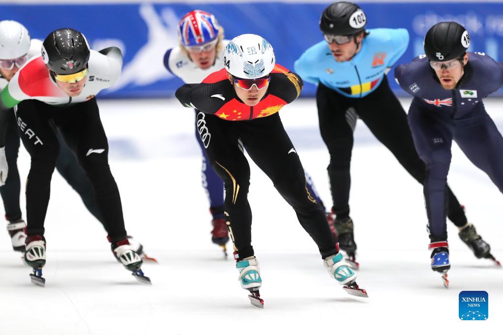 Li Wenlong (3rd R) of China competes during the heat of men's 1500m race at the ISU World Cup Short Track Speed Skating series in Dordrecht, the Netherlands, Nov. 25, 2021. (Xinhua/Zheng Huansong)