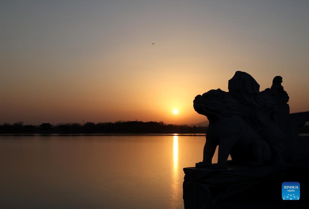 Photo taken on Nov. 25, 2021 shows the sunset scenery of the Summer Palace in Beijing, capital of China. (Xinhua/Chen Jianli)