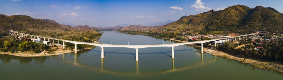 Photo taken on Feb. 5, 2021 shows the China-Laos Railway's Luang Prabang bridge across the Mekong River in northern Laos. (Photo by Pan Longzhu/Xinhua)
