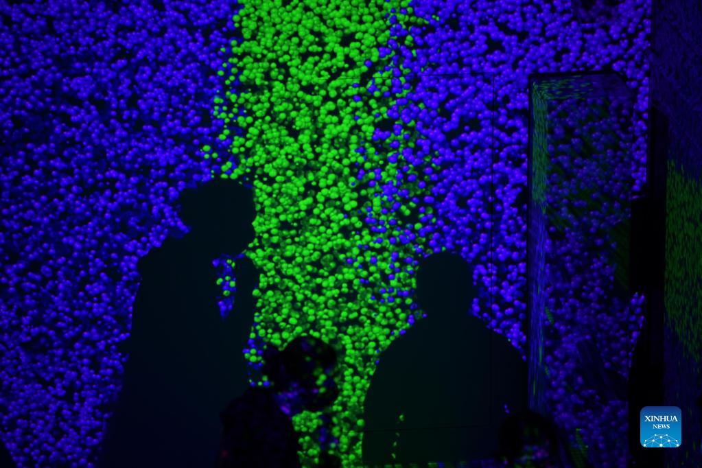 People visit a digital art exhibition at a movie theater in Istanbul, Turkey, on Nov. 24, 2021. A digital art exhibition, created by using artificial intelligence (AI), fascinates art lovers at a newly renovated ancient movie theater in Istanbul. (Xinhua/Sadat)