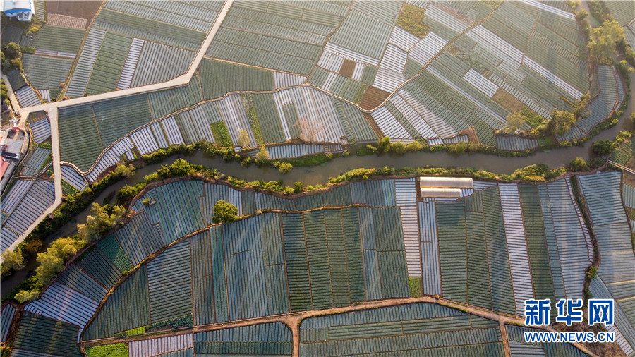 Aerial photo shows onion fields in Miandian Town of Jianshui County, Honghe Hani and Yi Autonomous Prefecture, southwest China's Yunnan Province. (Photo by Yang Junpeng/Xinhuanet)