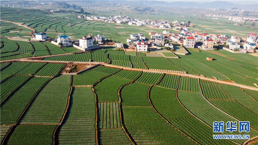 Aerial photo shows onion fields in Miandian Town of Jianshui County, Honghe Hani and Yi Autonomous Prefecture, southwest China's Yunnan Province. (Photo by Yang Junpeng/Xinhuanet)