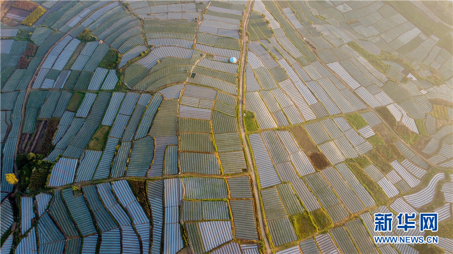 Aerial photo shows onion fields in Miandian Town of Jianshui County, Honghe Hani and Yi Autonomous Prefecture, southwest China's Yunnan Province. (Photo by Yang Junpeng/Xinhuanet)