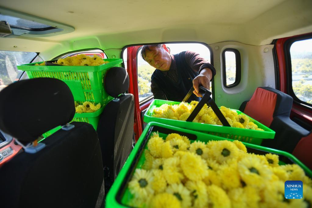 - Villagers harvest chrysanthemums in Qianjia Village, central China's Hunan