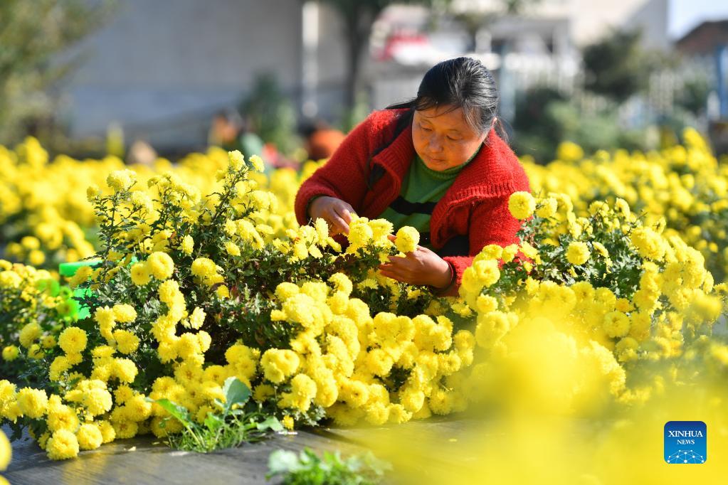 - Villagers harvest chrysanthemums in Qianjia Village, central China's Hunan