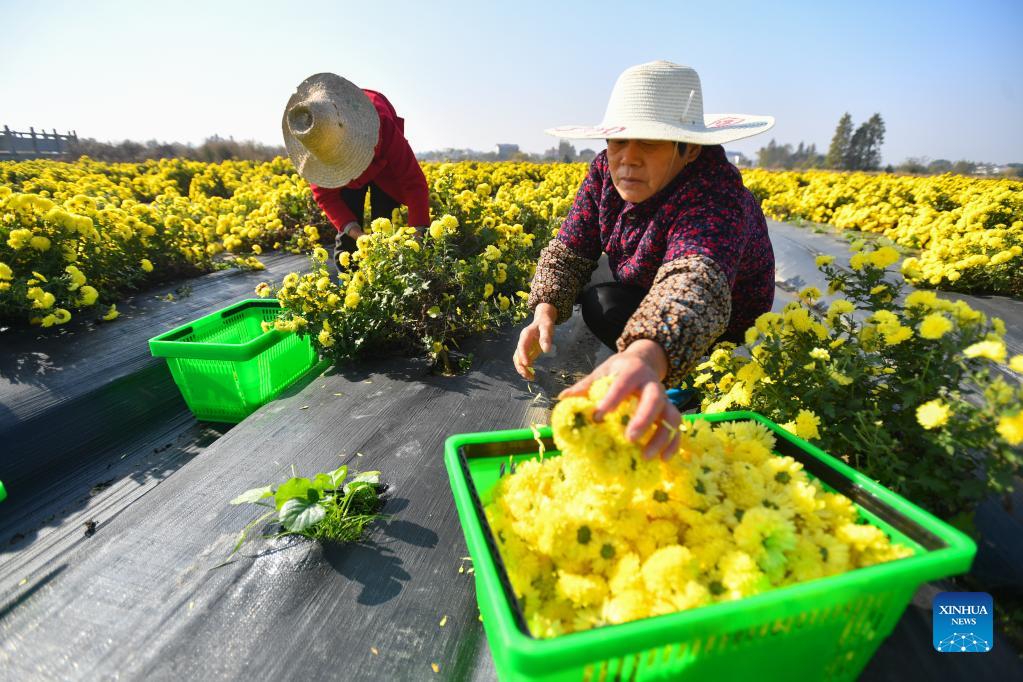- Villagers harvest chrysanthemums in Qianjia Village, central China's Hunan