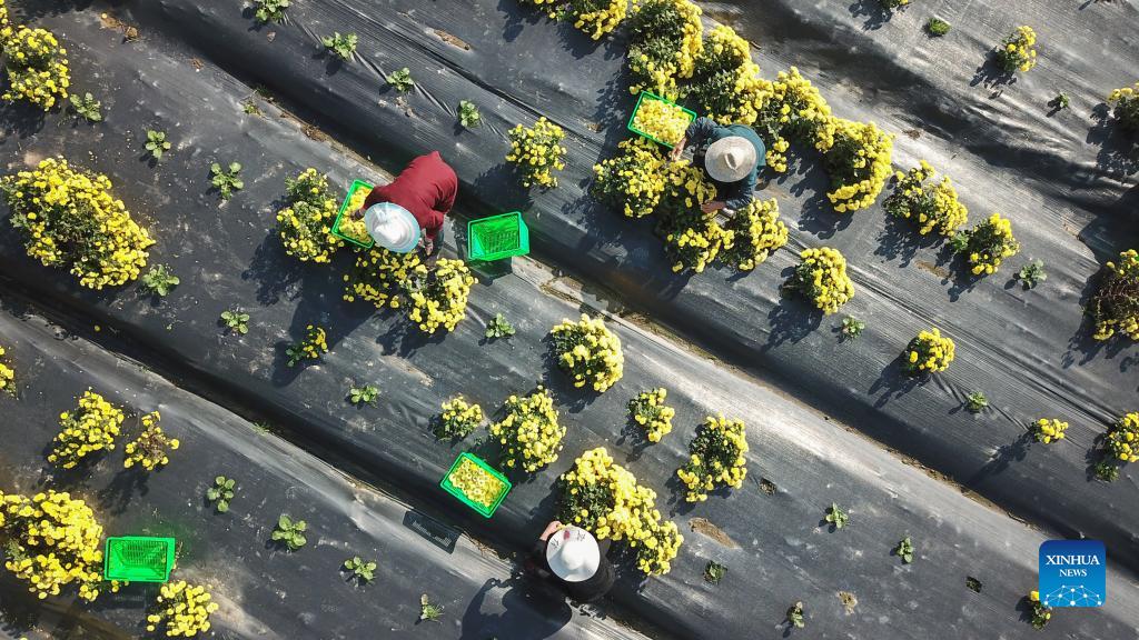 - Villagers harvest chrysanthemums in Qianjia Village, central China's Hunan