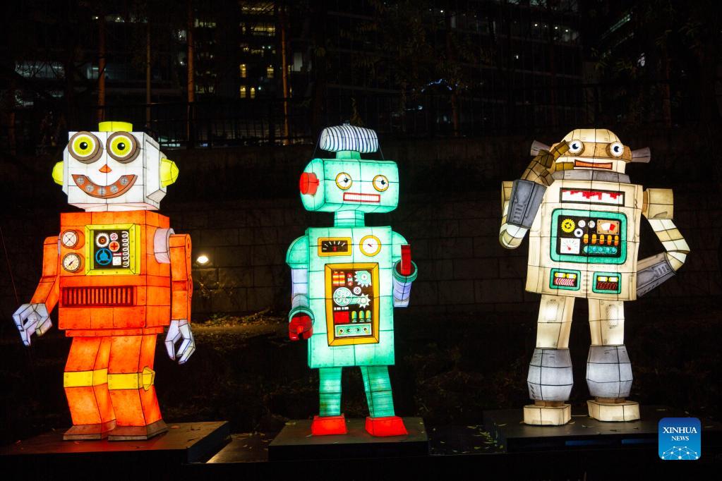 Lanterns are displayed during the 2021 Seoul Lantern Festival in downtown Seoul, South Korea, Nov. 26, 2021. (Xinhua/Wang Yiliang)