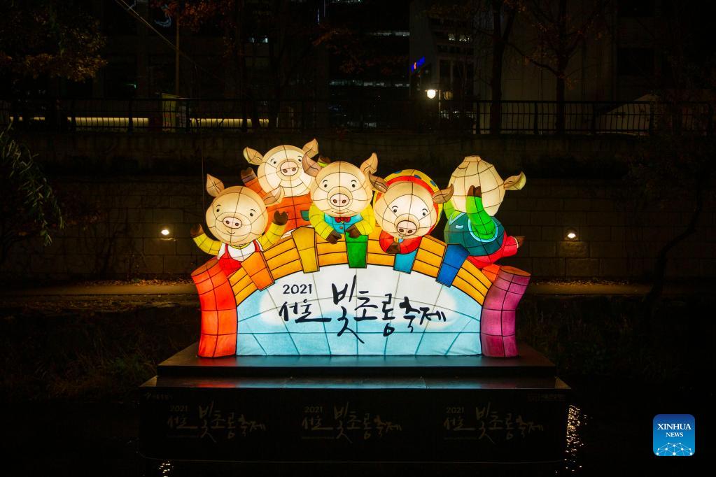 A lantern is displayed during the 2021 Seoul Lantern Festival in downtown Seoul, South Korea, Nov. 26, 2021. (Xinhua/Wang Yiliang)