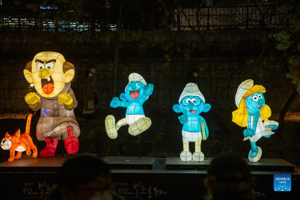 Lanterns are displayed during the 2021 Seoul Lantern Festival in downtown Seoul, South Korea, Nov. 26, 2021. (Xinhua/Wang Yiliang)