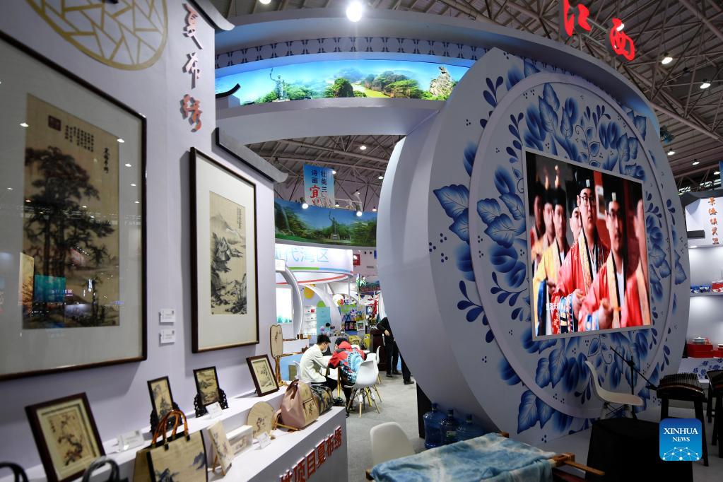 People visit the China (Wuhan) Culture and Tourism Expo in Wuhan, central China's Hubei Province, Nov. 26, 2021. The first China (Wuhan) Culture and Tourism Expo kicked off Friday in Wuhan, capital of central China's Hubei Province. Themed "Beautiful China, Happy Life," the three-day event has attracted industry and government representatives from 29 domestic provincial-level regions, 13 foreign countries and two international organizations, according to the organizers. (Xinhua/Cheng Min)