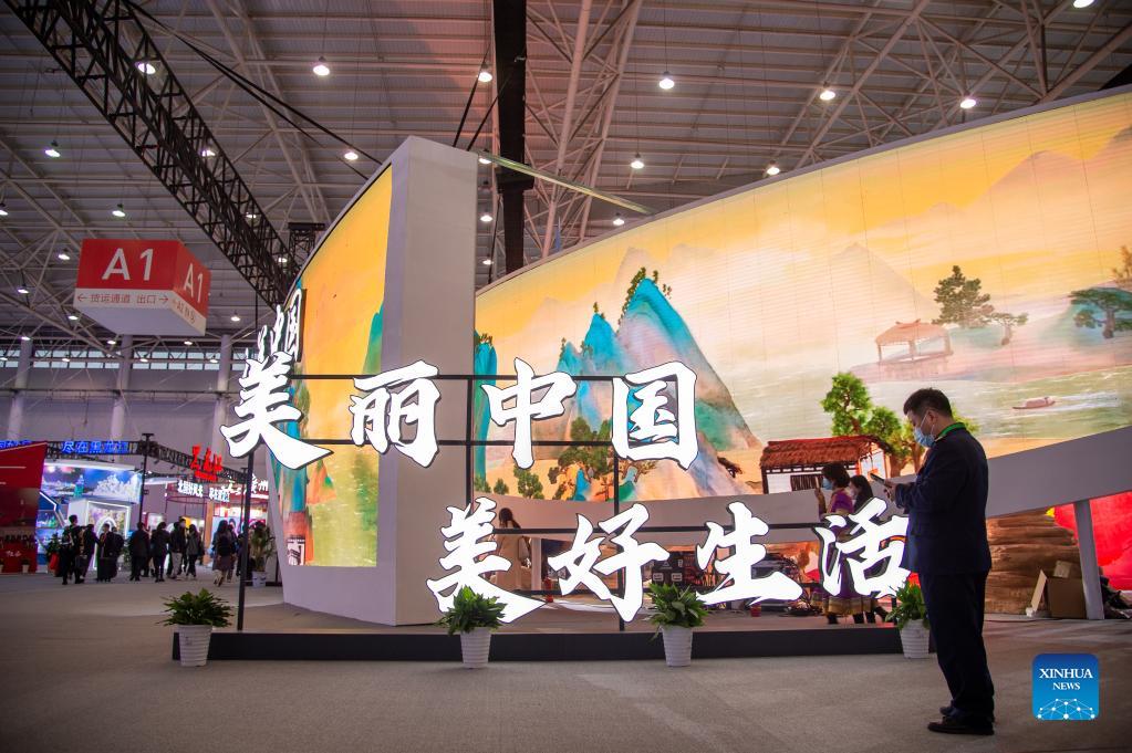 People visit the China (Wuhan) Culture and Tourism Expo in Wuhan, central China's Hubei Province, Nov. 26, 2021. The first China (Wuhan) Culture and Tourism Expo kicked off Friday in Wuhan, capital of central China's Hubei Province. Themed "Beautiful China, Happy Life," the three-day event has attracted industry and government representatives from 29 domestic provincial-level regions, 13 foreign countries and two international organizations, according to the organizers. (Xinhua/Wu Zhizun)