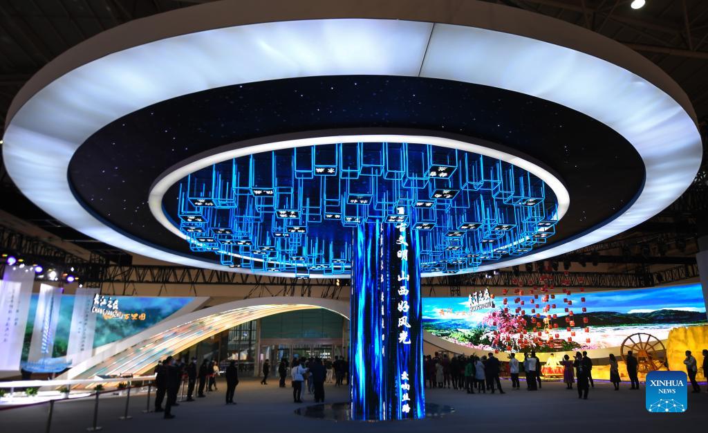 People visit the China (Wuhan) Culture and Tourism Expo in Wuhan, central China's Hubei Province, Nov. 26, 2021. The first China (Wuhan) Culture and Tourism Expo kicked off Friday in Wuhan, capital of central China's Hubei Province. Themed "Beautiful China, Happy Life," the three-day event has attracted industry and government representatives from 29 domestic provincial-level regions, 13 foreign countries and two international organizations, according to the organizers. (Xinhua/Cheng Min)