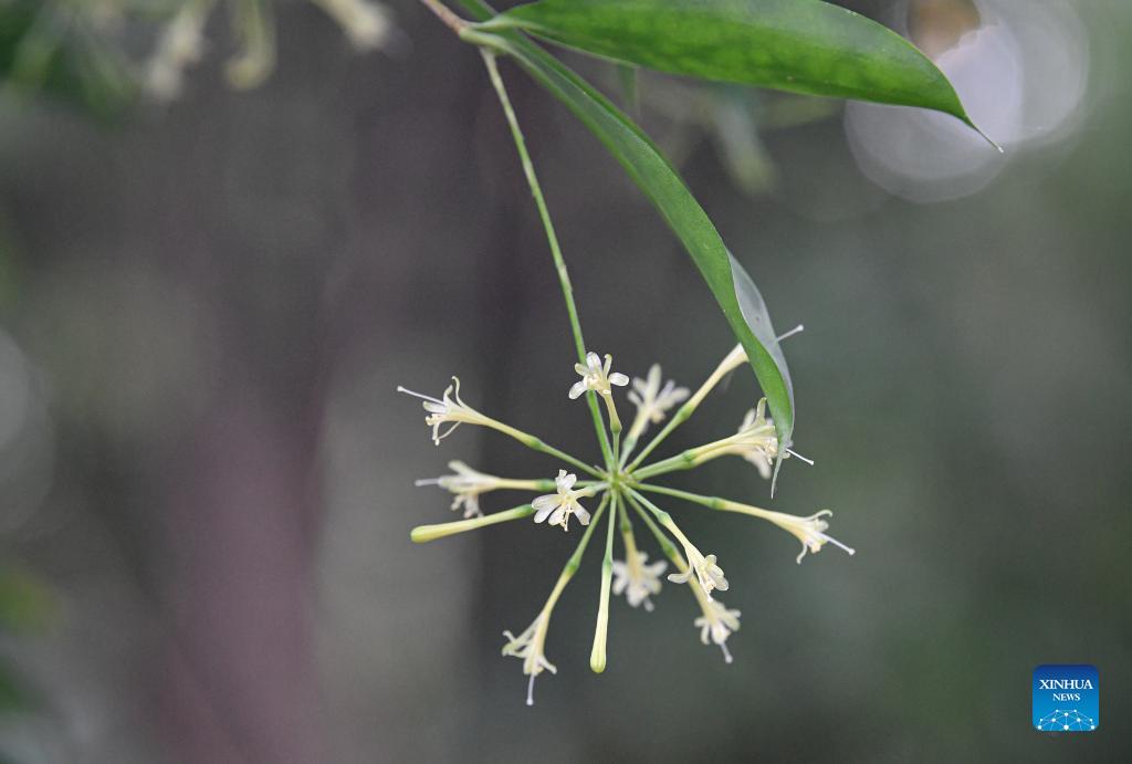 Photo taken on Nov. 18, 2021 shows the Dracaena surculosa in Hainan Tropical Botanical Garden in Danzhou City, south China's Hainan Province. Hainan Tropical Botanical Garden, located in Danzhou of south China's Hainan, was founded in 1958 and is now affiliated with Chinese Academy of Tropical Agricultural Sciences. The garden, with over 2,600 kinds of tropical and subtropical plants collected from more than 40 countries and regions, is a treasure house of tropical plant resources including flowers, fruit trees, medicinal plants and economic plants, etc. (Xinhua/Pu Xiaoxu)