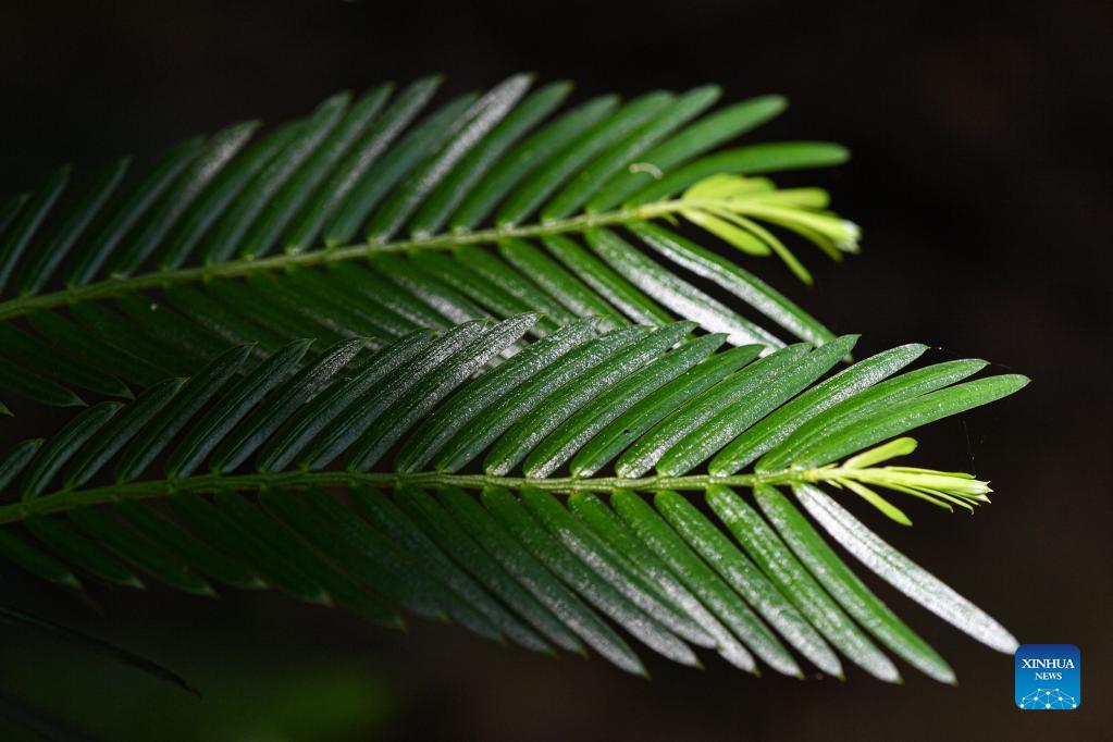 Photo taken on May 17, 2021 shows the Cephalotaxus hainanensis in Hainan Tropical Botanical Garden in Danzhou City, south China's Hainan Province. Hainan Tropical Botanical Garden, located in Danzhou of south China's Hainan, was founded in 1958 and is now affiliated with Chinese Academy of Tropical Agricultural Sciences. The garden, with over 2,600 kinds of tropical and subtropical plants collected from more than 40 countries and regions, is a treasure house of tropical plant resources including flowers, fruit trees, medicinal plants and economic plants, etc. (Xinhua/Pu Xiaoxu)