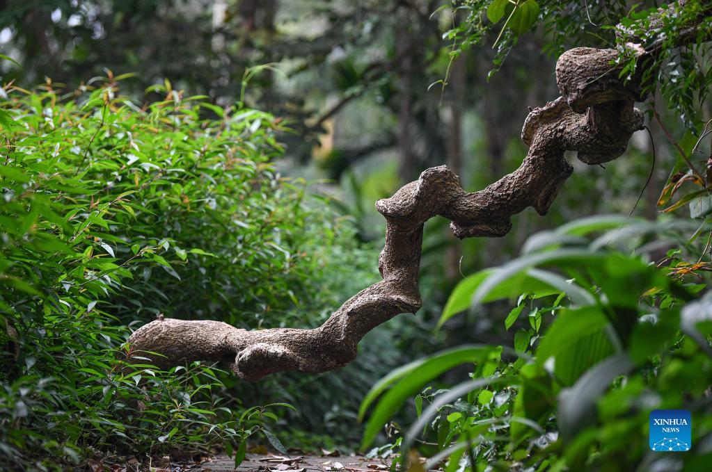 Photo taken on Nov. 17, 2021 shows the Entada phaseoloides in Hainan Tropical Botanical Garden in Danzhou City, south China's Hainan Province. Hainan Tropical Botanical Garden, located in Danzhou of south China's Hainan, was founded in 1958 and is now affiliated with Chinese Academy of Tropical Agricultural Sciences. The garden, with over 2,600 kinds of tropical and subtropical plants collected from more than 40 countries and regions, is a treasure house of tropical plant resources including flowers, fruit trees, medicinal plants and economic plants, etc. (Xinhua/Pu Xiaoxu)