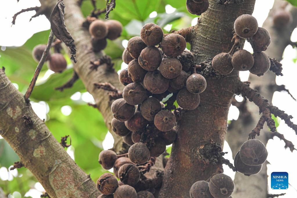 Photo taken on Nov. 17, 2021 shows the Ficus auriculata in Hainan Tropical Botanical Garden in Danzhou City, south China's Hainan Province. Hainan Tropical Botanical Garden, located in Danzhou of south China's Hainan, was founded in 1958 and is now affiliated with Chinese Academy of Tropical Agricultural Sciences. The garden, with over 2,600 kinds of tropical and subtropical plants collected from more than 40 countries and regions, is a treasure house of tropical plant resources including flowers, fruit trees, medicinal plants and economic plants, etc. (Xinhua/Pu Xiaoxu)