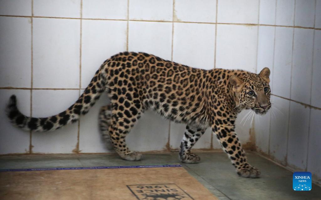 A six-month-old leopard is seen at a care center in Van Vihar National Park in Bhopal, capital of India's Madhya Pradesh state, Nov. 27, 2021. This feline cub had been left behind by its mother in a jungle before villagers found it and sent it to the Van Vihar National Park. (Str/Xinhua)