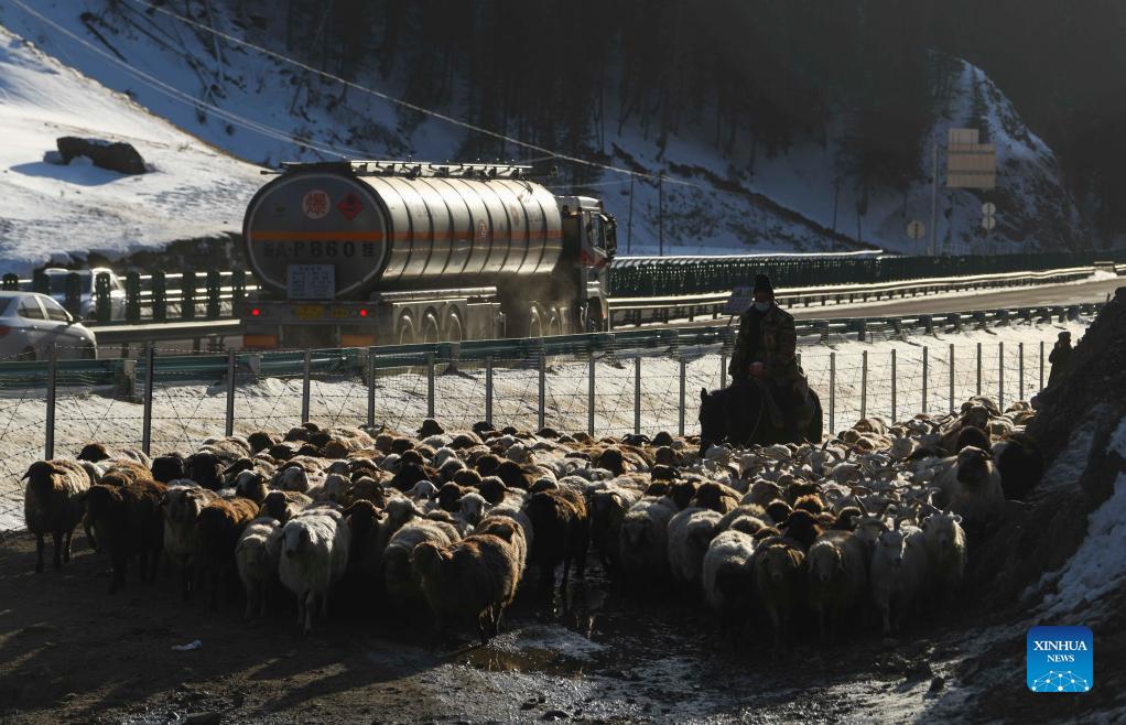 Herders move livestock to winter pastures in China's Xinjiang (7)